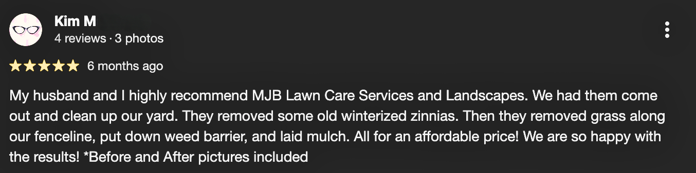 From weekly mowing and trimming to mulching, rock work, and full landscaping projects, we bring care, attention, and a personal touch to every job. At MJB Lawn Services & Landscapes, LLC, your satisfaction isn’t just a goal — it’s our promise.